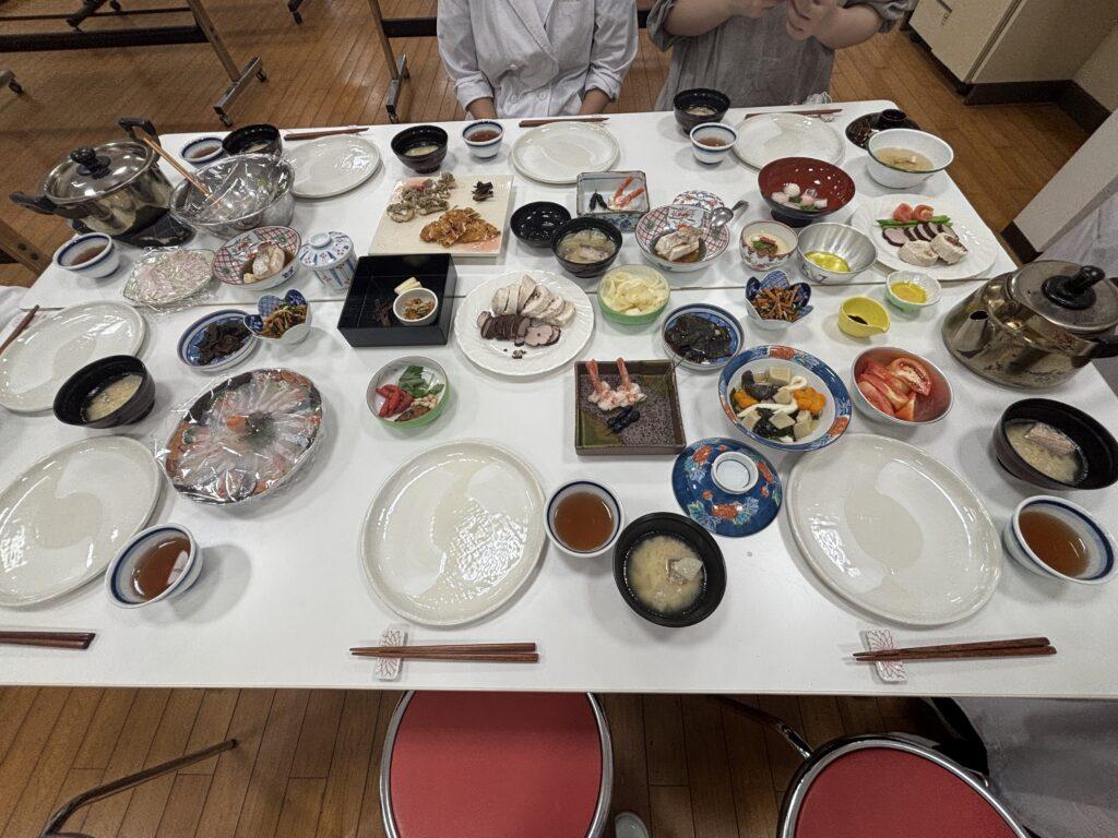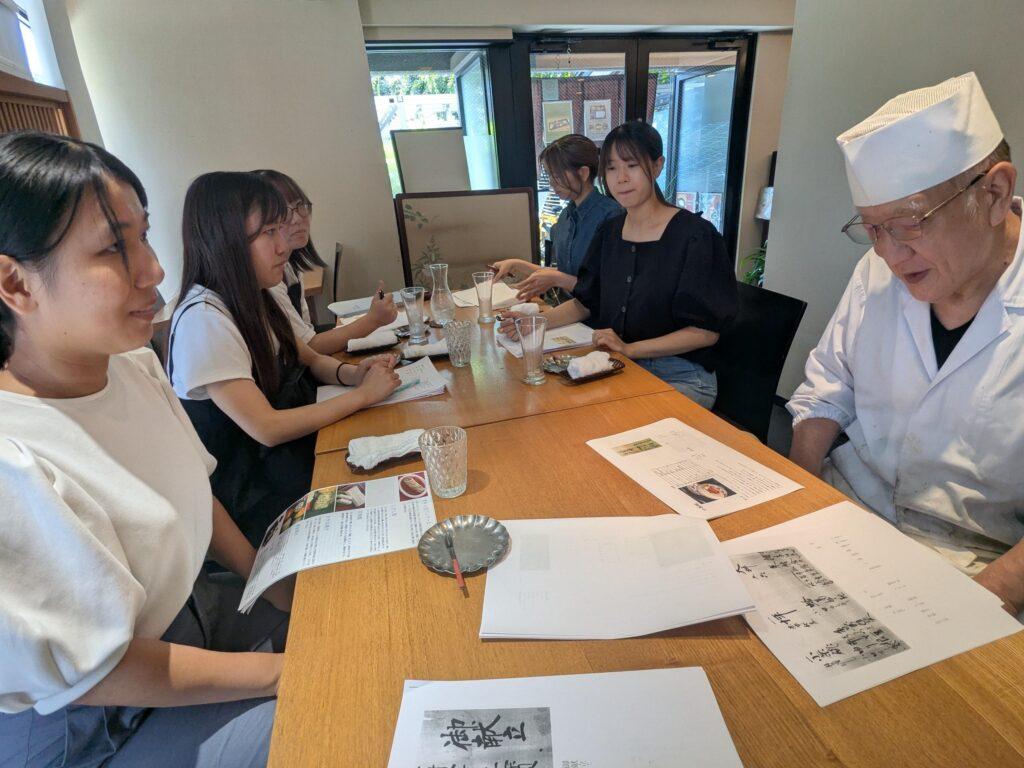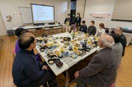 昔ながらの料理に詳しい、本学OGの戸次元子先生とともに、献立の解釈を行いました。献立の中に先生がご存じである料理も含まれていて、様々なアイデアをいただくことができました。また、料理を再現することの難しさや楽しさ、料理を再現する際に必要なことも教えていただき、とても参考になりました。