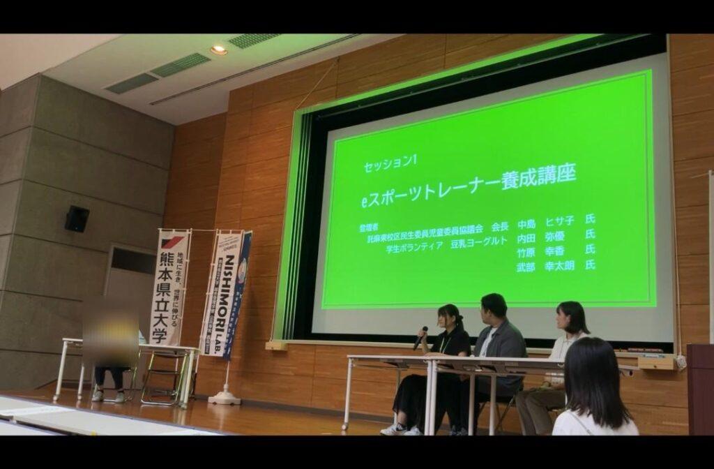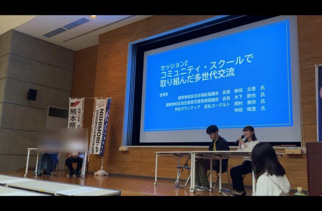 第2部では、豆乳ヨーグルトの活動報告を行いました。eスポーツを活用した活動報告の他に、新たに始めた青春繋輪事業、コミュニティ・スクールでの世代間交流の報告などが主な発表内容でした。関係者の方とセッションをする形で活動報告を実施したのですが、事前打ち合わせの際、相手の方とeスポーツや地域交流に対する思いや考えを交換していく中で、多くの学びを得ることができました。本番では、伝えたい思いを互いに言葉にし、多くの参加者の方々へ届けることができたと思います。