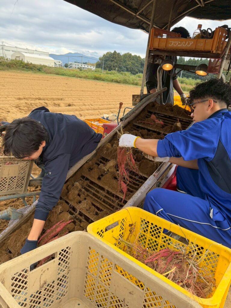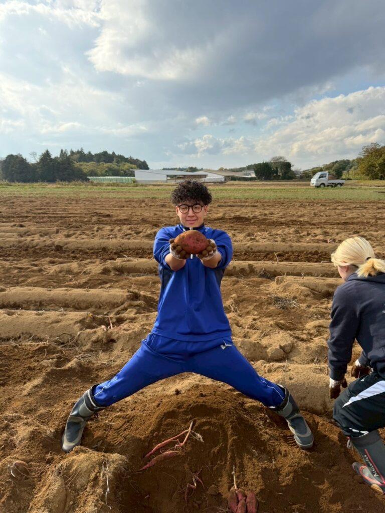 大津町ではさつまいものことを「からいも」と呼び県内No. 1の生産量を誇ります。東京ドームより広い面積があるからいも畑で手作業で芋を掘ったり、機械に乗せてもらい芋を収穫するなど貴重な体験をさせて頂きました!掘った芋はゼミのみんなで分け合いました🍠また、大津町の特産品である「銅銭糖」を食べに浪花屋さんへ行ったり、空に浮かぶように展示されたバイクが目印のオートバイ神社で有名な道の駅「大津」にお邪魔したりなど、大津町をからだ全体で感じた1日でした!