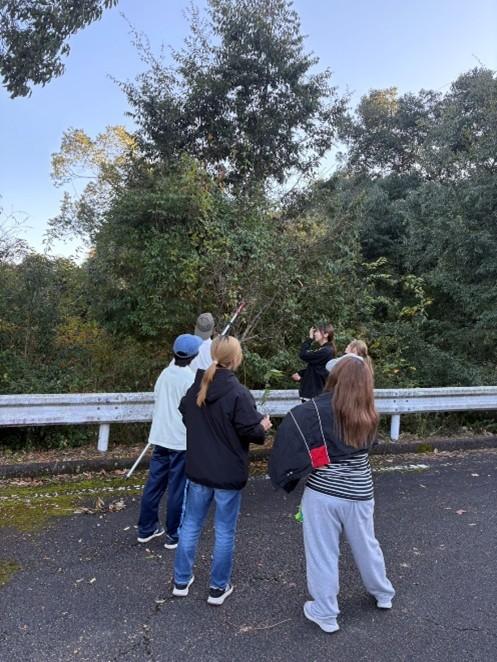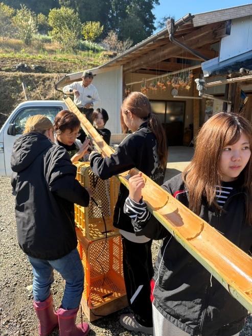 1日目は地域の自然資源を活かした「流しそうめん」に挑戦。竹の伐採から取り組み、清流と新鮮な竹の風味を感じる、格別な味わいを体験。その後、集落周辺を散策し、多様な植物や自然環境に触れながら、松尾の魅力を再発見しました。夜には住民の皆さまと鍋を囲み、世代を超えた温かな交流を深めました。2日目は集落でゆずの収穫体験。午後には12月の企画に向けてワークショップを行いました。