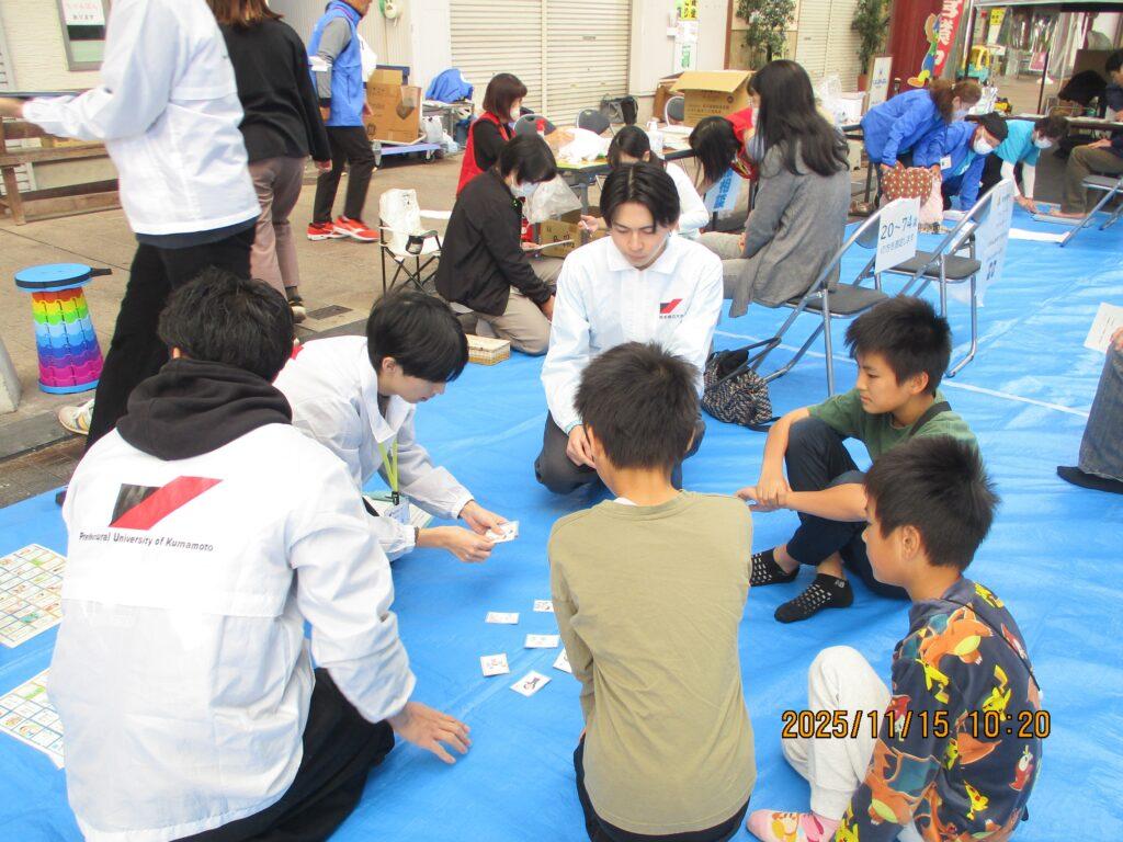 2025年11月15日、松本ゼミ3年生は、健軍商店街で開催された東区民まつりに参加し、「東区健康増進かるた」の体験ブースを出展しました。当日は、幅広い世代の方々にかるたを楽しんでいただき、地域の健康づくりに対する関心や多くのご意見・ご感想を直接伺うことができました。