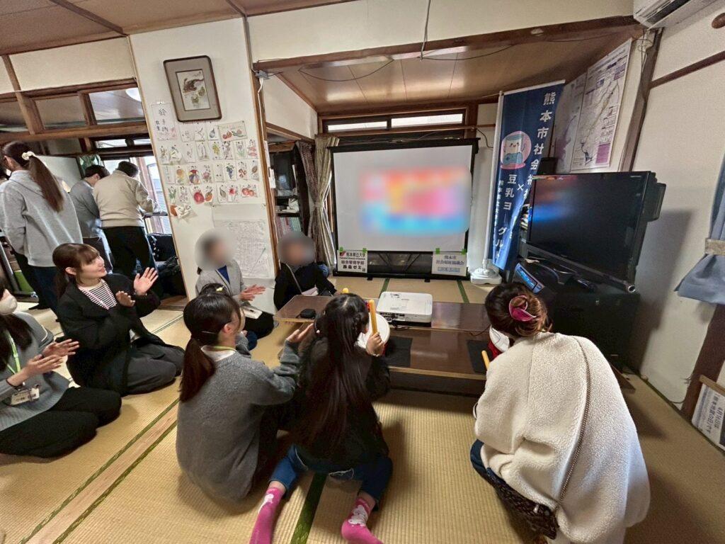 1月24日に尾ノ上6町内公民館で開催された「尾ノ上6町内ふれあいいきいきサロン&こども会交流会」にて、eスポーツ体験会を実施しました。今回は、ボウリングのゲームとリズムよく太鼓を叩くゲーム、カーレースのゲームの3つを展開させていただきました。ボウリングでは、私たち学生も交ざり、4チーム対抗のゲームを行いました。子どもたちだけでなく、保護者の方や大人の方も参加されていて、親子や普段地域の中で見かけるだけのような人と一緒にeスポーツを体験し、地域交流が深まったと思います。特に、ボウリングでスペアやストライクをとったとき、カーレースのゲームで高順位をとったときにチームの人や隣にいた人とハイタッチをしていた姿がとても印象的で地域の絆が強まったと感じました。今後も、子どもだけでなく保護者や高齢者の方に参加していただけるような、世代を超えた交流ができる場を提供していきたいと思います。