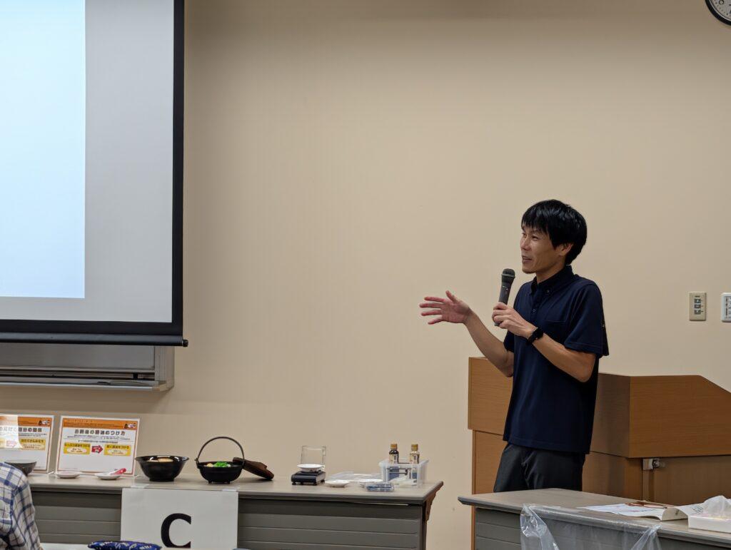 講演内容は、食事からの食塩摂取に関わる内容について、近年の日本人の食塩摂取量や食塩を多く含む加工食品の話など一般的なものから食塩摂取量と血圧の関係や味覚が食塩摂取量に与える影響など最新の研究成果からわかることなどを幅広くお話ししました。