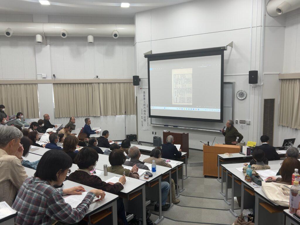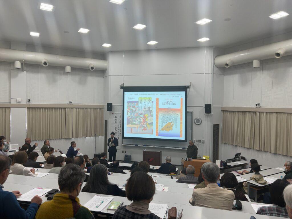 本学文学部は、江戸時代の文学・文化の魅力や特色の紹介を趣旨として、3名の専門家を講師とする公開講座を企画し、その第1回目を開催致しました。71名の参加者があり、10名の本学学生以外は、幅広い年齢層の方々にお集まりいただきました。