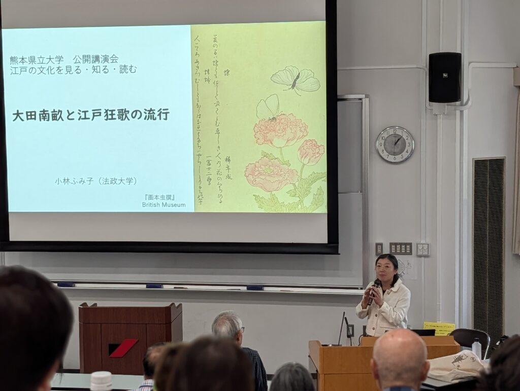 2025年10月4日(土)、11月1日(土)、12月20日(土)に熊本県立大学小ホールにて、特別講座「江戸の文化を見る、知る、読む――南畝・ケンペル・蔦重とその時代――」を開催しました。のべ223名の方々が参加されました。