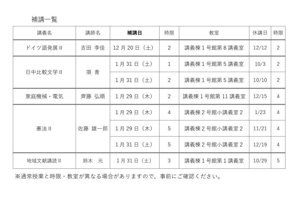 →10月3日(金)2時限・10月10日(金)2時限 休講分(11/21掲載)