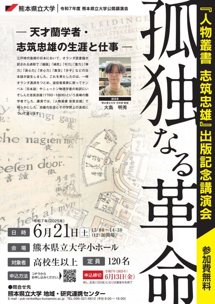 公開講演会『人物叢書 志筑忠雄』出版記念講演会「孤独なる革命―天才蘭学者・志筑忠雄の生涯と仕事―」受講生を募集します!