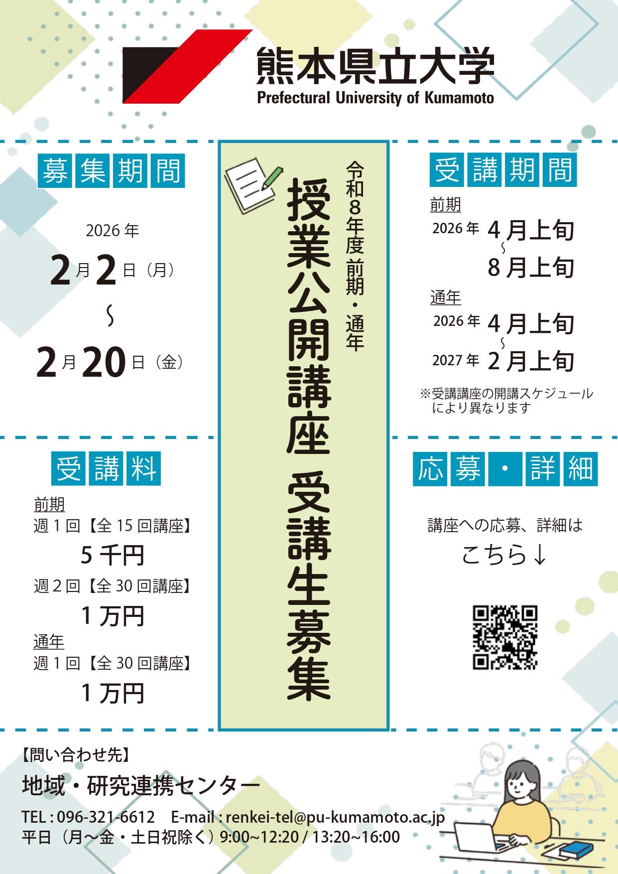 令和8年度(2026年度)授業公開講座【前期・通年】受講生募集